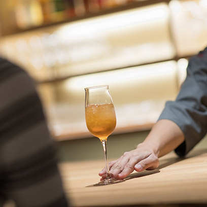 宿泊のお客さま専用のラウンジです。読書などで自由におくつろぎいただけます。夜は梅酒を中心としたバーに様変わり。朝はモーニングコーヒーのサービスがございます。