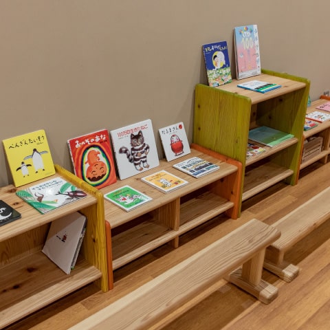 木製のすべり台や、ブランコなどの遊具は香り、手触りが心地よく、小さなお子さまが安心して遊べるよう壁や床の素材にも配慮しております。絵本などもあり、お子さまとご一緒にのんびりと寛ぐことができます。